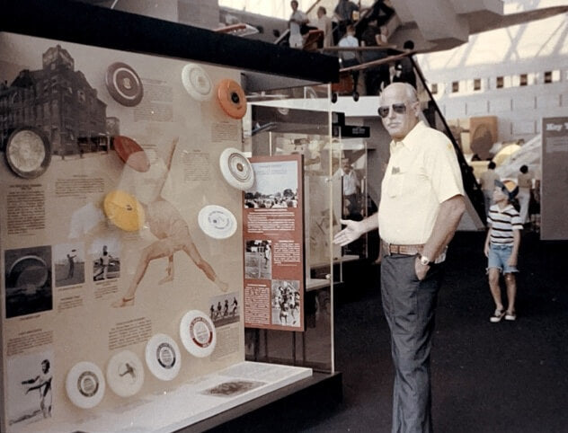 Rich in the Smithsonian, taking in the Frisbee® display.