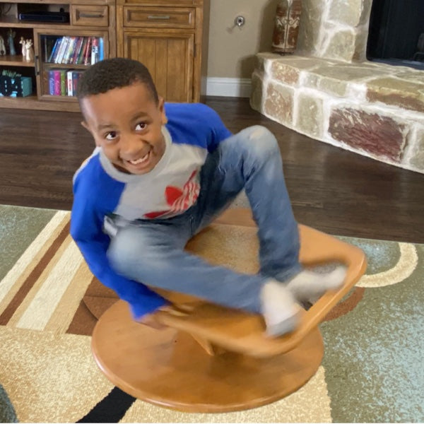 Kids love to spin because it feels good. Spinning feels good because it provides powerful vestibular stimulation that enhances balance, coordination, spatial awareness, ability to focus on tasks and even the ability to concentrate in class. It's thought that vestibular stimulation helps young brains develop, probably why it feels good. Also why it doesn't feel good for adults!